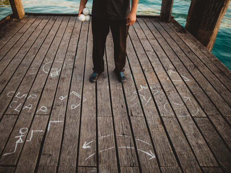 Autour du jonglage, le public est aussi là pour participer et faire évoluer l'histoire du spectacle.