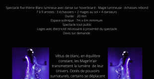 Arrivant d'un royaume lointain, vêtus de blanc, en équilibre constant, les Mage'in'air transmettent la lumière et la connaissance de leur univers. Dotés de pouvoirs surnaturels certains se déplacent sans toucher le sol tandis que d'autres mesurent jusqu'à 3 m de haut !