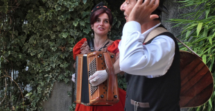 Honorine s'accompagne à l'accordéon et Célestin à la guitare