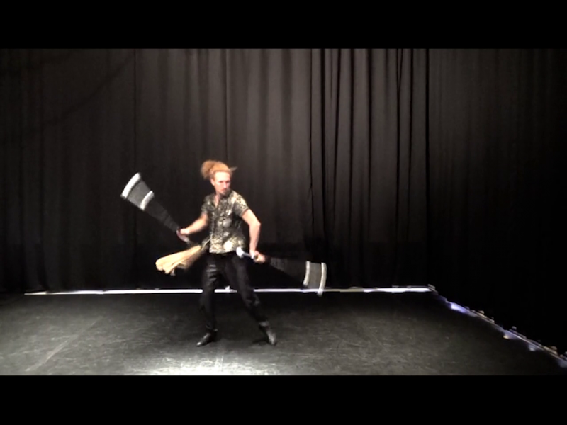 Une performance particulièrement originale mélangeant acrobaties, lancers, pas de danse et jonglerie.