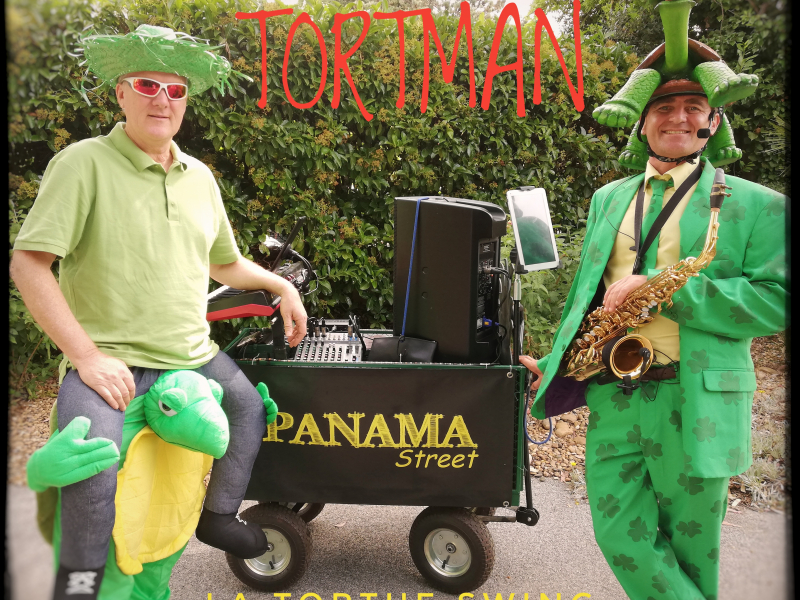 Retrouver la troupe déjanté de Tortman, un homme tortue Chanteur & Saxophoniste accompagné des tortues swing (son pianiste et son percussionniste)