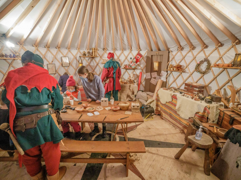 Partez à l’aventure et découvrez le repaire du Père Noël au pôle nord : ses ateliers, sa cuisine, ses secrets ! Les enfants deviendront de vrais petits elfes grâce aux ateliers auxquels ils participeront: fabrication de sacs ou bracelets magiques en cuir, cuisine de gâteaux elfique, entraînement à distribution des cadeaux sur un parcours d'obstacles animé en son et lumières... avant de rencontrer le Père Noël en personne!
