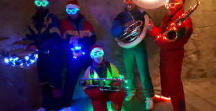 Jingle Drums Percussions hivernales et rythmes tintinnabulants, un spectacle de rue inédit pour la saison de Noël, aux effets lumineux inédits et surprenants :Jingle DrumsSpectacle sons percussifs et... Par Cie Poum tchaC