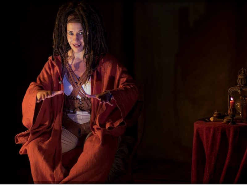 Mélody conte ses légendes entourées de ses instruments de musique merveilleux ( hang, flûtes en corne, percussions exotiques ) et de sa jonglerie de cristal