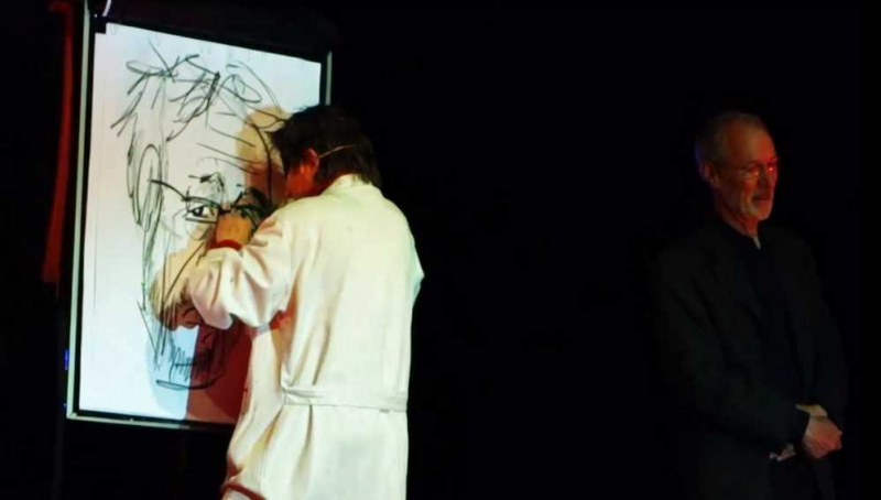 Ce show visuel est très impressionnant. La création en direct sur une toile de grand format du portrait d’une célébrité, crée toujours un impact émotionnel très fort sur le public. Le temps d’exécution très court a un effet renversant.