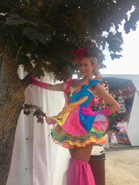 Spectacle déambulatoire, visuel et modulable : en solo ou en duo, nos comédiennes sur échasses vous inviteront à découvrir la déambulation clownesque avec leurs accessoires féeriques (confettis, sifflets, ballons, ...).