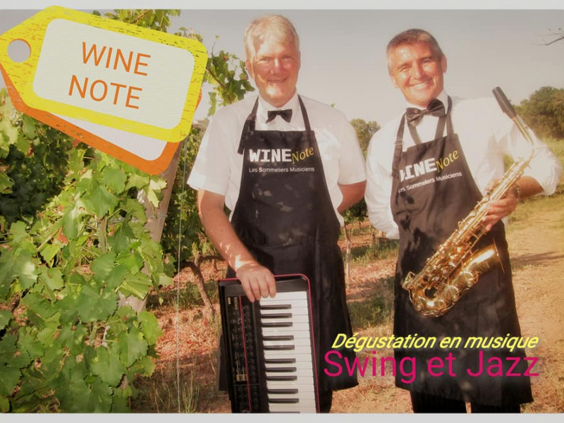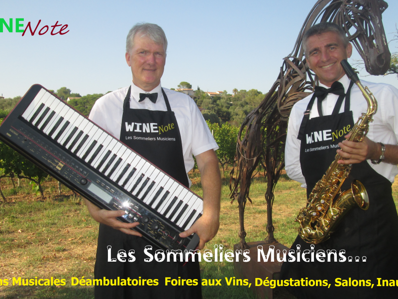 Un Chanteur Saxophoniste et Un Pianiste déambulent dans une magnifique ambiance Swing & Jazz en tenue de serveur sommelier à travers les foires aux vins, fêtes de la gastronomie, foires du terroir...