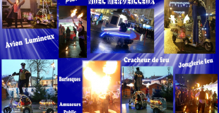 Sans oublier notre aviatrice et son avion à la façon de St Exupery qui croit en son rêve de décollage et entraîne les enfants dans son sillage pour une part de rêve en attendant le Père Noël,à la croisée des chemins avec sa belle et fine équipe d'échassiers,de jongleurs,cracheur de feu,burlesque,sculpteur de ballons,jonglerie,comédiens d'interventions et tout autres phénomènes.