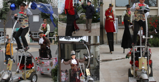 Dans les rues,votre parc,sur le marché de bouche,de Noël,"Les fous du volants " pour distraire petits et grands,ils reviennent joyeux et trépidants tout en couleurs à la fois doux dingues joyeux et participatifs,du haut de leurs engins sonorisés et parfois lumineux,du haut de leurs échasses,mécaniciens encombrants et maladroits,compétiteurs au casque et lunettes fixés sur la tête,ils égayent les rues de votre ville,commune,donnant à votre manifestation et public un élan,un partage et une joie communicative.