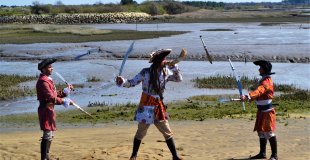 Déambulation Pirates Fin Comme un Tonneau Le Capitaine Barbapoux et l'intrépide Mary-Castagne animent vos festivals, carnavals et fêtes maritimes à grands coups de jonglerie, de magie, de musique et autres surprises !!! Ils déambulent... Par Cie Pirates des Caravanes