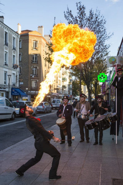 D'abord de la déambulation en percussions accompagnée par de la jonglerie, de la comédie, de la danse, parfois un échassier et une charrette ou un petit char cercueil. Les artistes envahissent les allées, les rues, les routes et font résonner leur musique. Des rythmes de fêtes, des personnages charismatiques, des prouesses circassiennes.