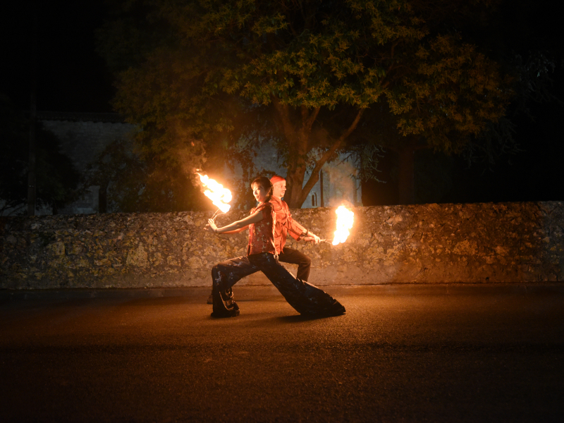 Nous vous proposons une déambulation de musiciens sur échasses ou sur scene avec duo de jongleurs de feu et de jongle lumineuse et un cracheur de feu professionnel et entrainant. Le spectacle est modulable en fonction de votre demande et de votre budget entre 1 heure et 2.