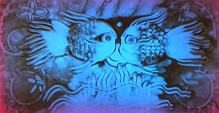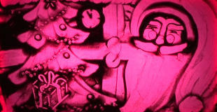 Dessins de sable sur table lumineuse retransmis sur écran