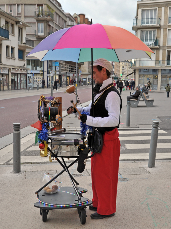 L'Orc de Barbarie Déambulation musicale médiéval fantastique.Roc est un "barde demi-orc". une créature de fantasy qui déambule dans votre ville en poussant sa grosse charrette sur laquelle se trouve un instrument... Par Cie du Zèbre à bretelles