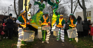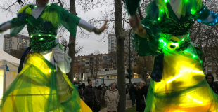 Jingle Drums Percussions hivernales et rythmes tintinnabulants, un spectacle de rue inédit pour la saison de Noël, aux effets lumineux inédits et surprenants :Jingle DrumsSpectacle sons percussifs et... Par Cie Poum tchaC