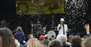 Sur la scène, Les Zélectrons Frits sont déguisés, bah oui c'est Carnaval pour tout le monde. Dès le début on "Jumpe", puis on se prend pour des motards, on lance des confettis ou on fait semblant, on fait une chenille brésilienne en Samba, on fait du Air Guitar, on apprend à faire un vrai rappel Rock'n Roll et puis encore plein d'autres choses qui font que le concert est très très vite passé.