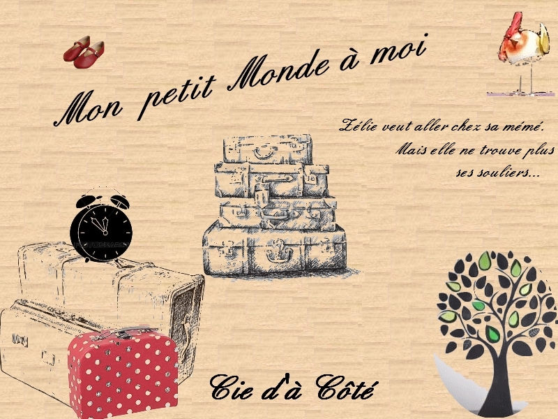 Mon petit monde à moi, spectacle ludique et poétique à destination des plus petits (18 mois / 5ans) ; valises d'où s'échappent personnages, musiques, poèmes (Prévert, Desnos) ...Mon petit monde à moi est une bulle de douceur et de fantaisie. Langage du corps, langage des mots, émotions, surprises...les petits se laissent emmener pour un drôle de voyage, à la découverte d'un monde à la fois nouveau et rassurant.