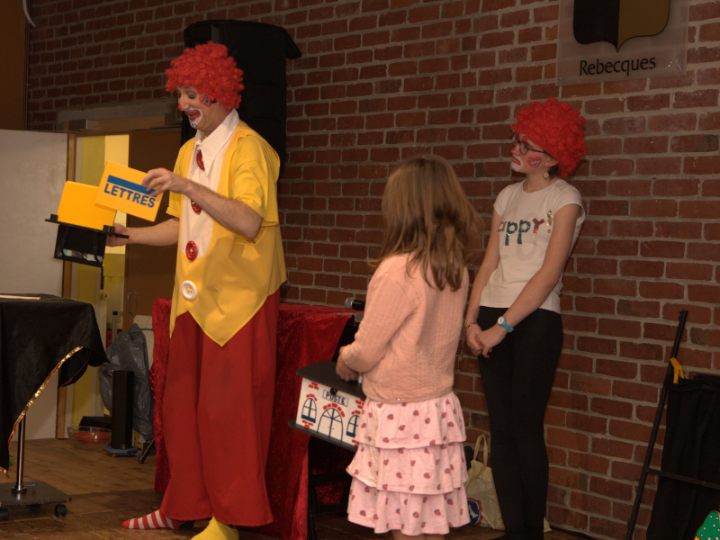 - un spectacle de clown magicien, avec participation d'enfants à tous les tours (sauf entrée en musique)..à noter, des tours permettent la participation de tous les enfants ensemble.