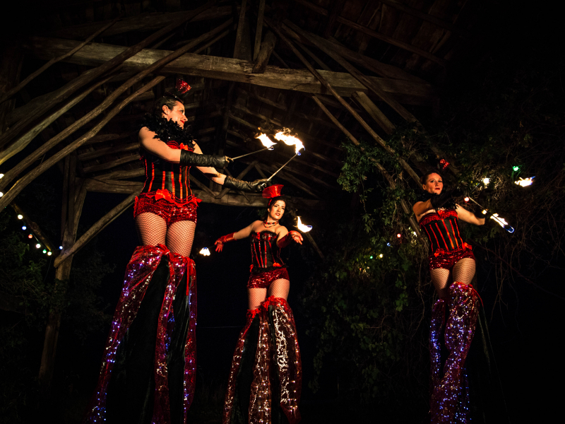 Succès assuré pour vos événements avec nos trois grandes hôtesses de cabaret, jongleuses de feu, souriantes, lumineuses et chaleureuses ! Cette formule d'échassières Cabaret est un véritable atout pour un événement glamour et festif réussi.