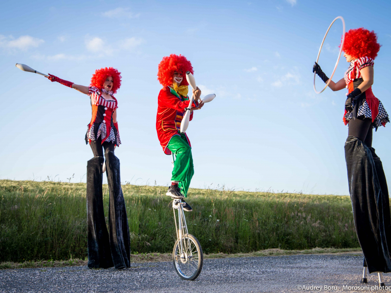 La magie du cirque, c'est ce que vous propose la compagnie d'échassiers Cirkomcha dans sa parade Circus. Ses personnages clownesques déambulent sur échasses ou au sol, voire en monocyle ; ils sont des jongleurs ou acrobates. Ces clowns farceurs s'amusent entre eux mais sont également très interactifs avec leur public.