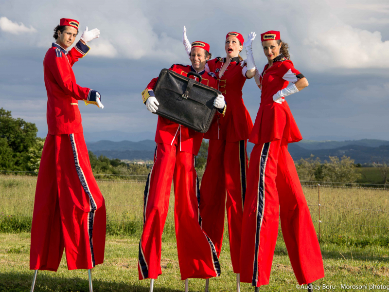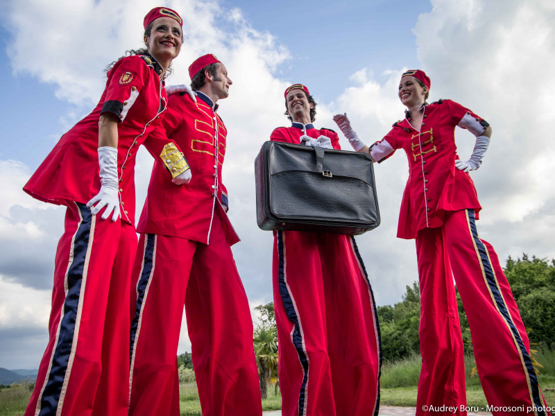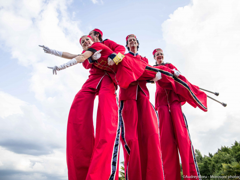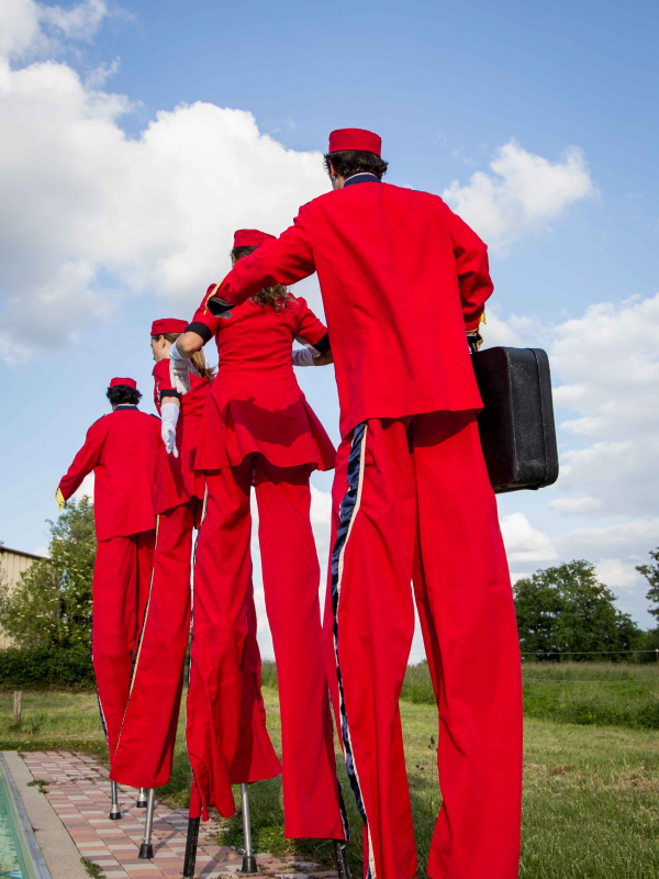 Cette parade est composée de quatre artistes en déambulation sur échasses fixes.