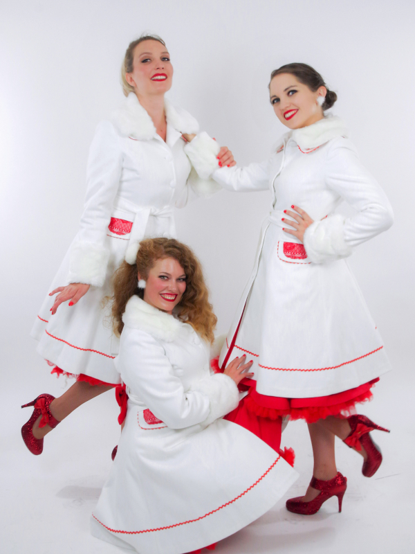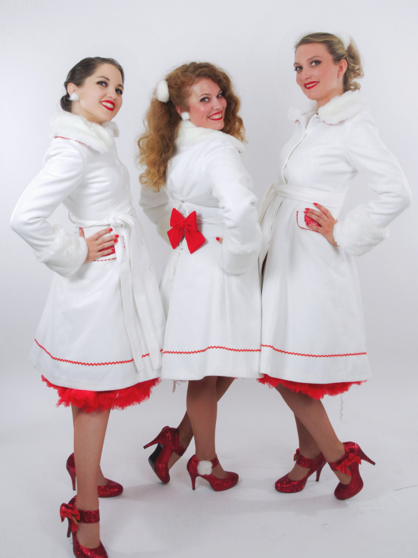 Emmitouflées dans leurs petits manteaux blancs, apprêtées de leurs somptueuses robes rouges, chaussées de leurs petits souliers blancs fourrés et parées de leurs brillants, les Christmas Mademoiselles qui ont été très sages, attendent le père Noël en reprenant les plus grands standards de la tradition des fêtes de fin d'année.