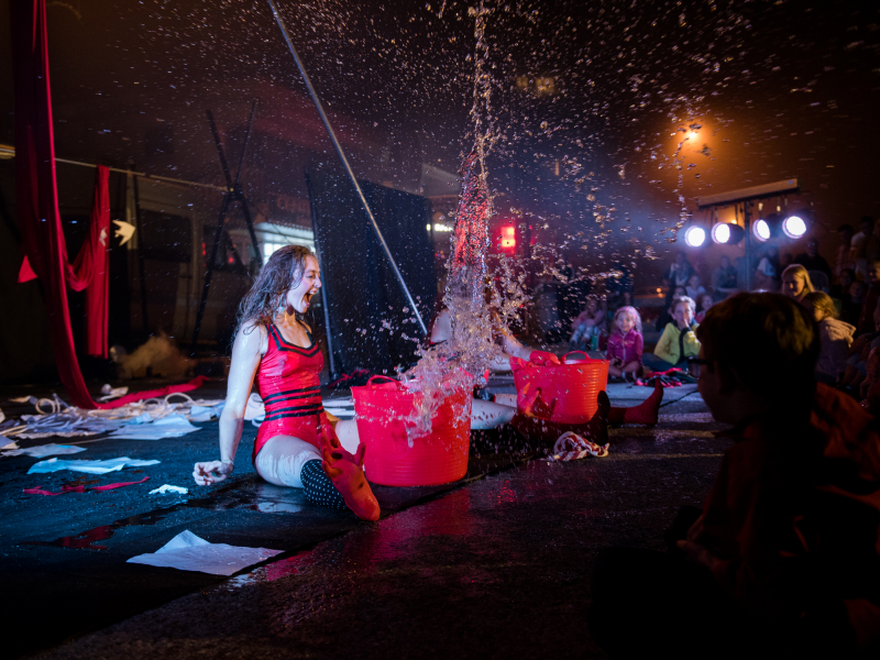 Une lueur dans l'averse - cirque, clown et gouttes d'eau