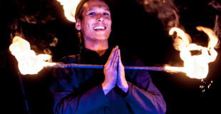 Grâce à son énergie et son personnage atypique, il saura apporter chaleur et originalité à votre public. Au fil des années Shay a su compléter son spectacle par des créations uniques d'objets enflammés (lance-flamme, roue de feu, trident, etc.), qu'il manipule en nombre, combinés à d'importants effets visuels, grâce à la manipulation de feu d'artifices, dont lui seul en a le secret !