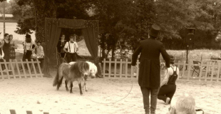 Qui ne s'est pas attendri sur la frimousse d'un petit poney shetland? Une bouille sans nulle autre pareille. Ce spectacle met en piste des petits poneys shetlands qui vont trotter, danser, et surtout se jouer malicieusement du dresseur ridicule et burlesque. On vous racontera quand même la fabuleuse odyssée de ce petit poney depuis la nuit des temps... C'est géant.