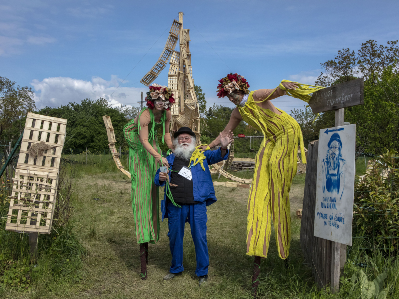 La Jardinière MMe Binette, nous conte avec l'aide de ses petits amis (marionnettes) épouvantail, Fleur, hérisson l'histoire 'D'un héros au Potager" aux oreilles des choux qui se tendent pour écouter, rire, s'amuser...Véritable interprète des plantes vivaces, Mme Binette transmet les messages de la nature à des deux compères végétaux géants, la Grande Toque et Mandragore : "J'ai senti mes poumons gonfler sous l'effet d'un paysage : air, montagne, gens. j'ai pensé ce que c'est d'être heureux" (Sylvia Plath) Nos deux colosses Feuillus, quant à eux s'émerveillent de tout : touchés pas la biodiversité leurs coeurs chantent, leurs pétales dansent, leurs feuilles s'emmêlent et leurs branches s'enracinent."