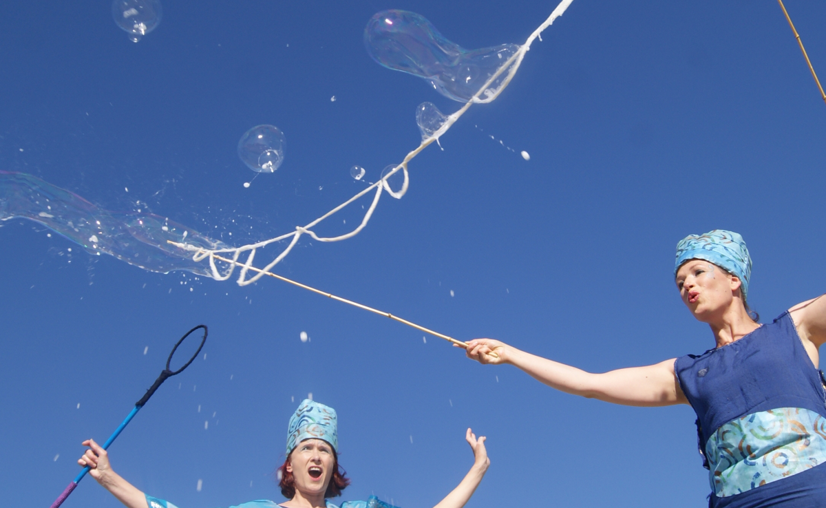 Avec leurs mouvements librement inspirés du Tai Ji, elles entament une danse en miroir où les bulles d'énergie circulent de mains en mains dans le public.