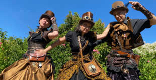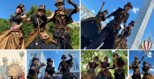 Costumes stylisés, artistes circassiens chevronnés (échassiers, acrobates, jongleur, contorsionniste, manipulation de feu). Plongez au cœur de notre univers Steampunk qui s’adapte à tous vos événements : parade festive, fête de ville, soirée de gala, soirée nocturne branchée ou déjantée, mais aussi actions culturelles avec nos visites théâtralisées historiques que nous écrivons sur mesure pour votre musée ou votre exposition ou le quartier de votre ville.