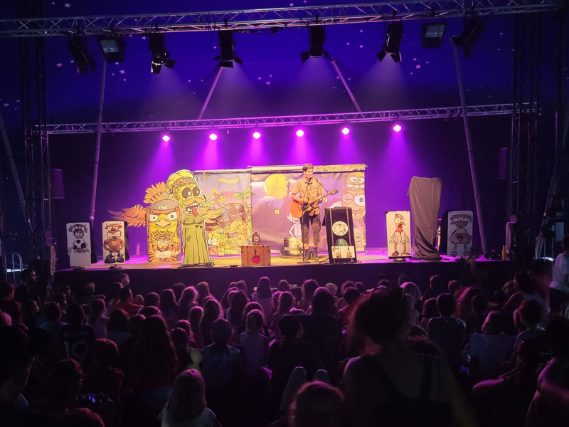 Les personnages géants, dessinés façon BD, rendent l'histoire immersive et font comme toujours sensation lors de leur arrivée pendant le spectacle.