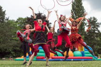 Voici nos danseuses colorées, jongleuses aux milles objets, farceuses et rieuses. Elles sont prêtes à animer les rues de votre ville avec leurs espiègleries et jongleries ; prêtes à jouer et danser avec les grands et les petits ; Cirkus Parade laissera de la joie et de l'émerveillement dans les mémoires de chacun.