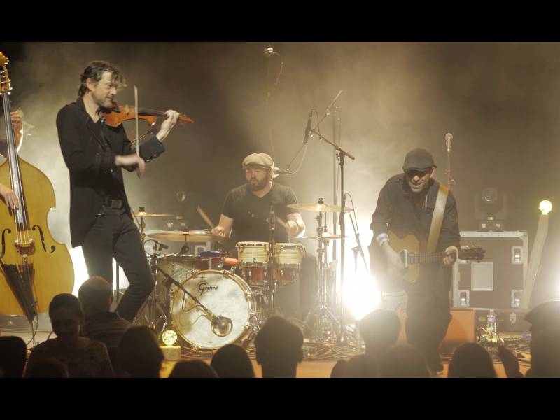 - Formule quatuor festive : batterie, percussions, contrebasse, violon, guitare, chants