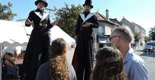 Tout droit issus de la Belle Époque, ces élégants échassiers en queue de pie et hauts de forme déambulent dans vos événements pour accueillir le public.