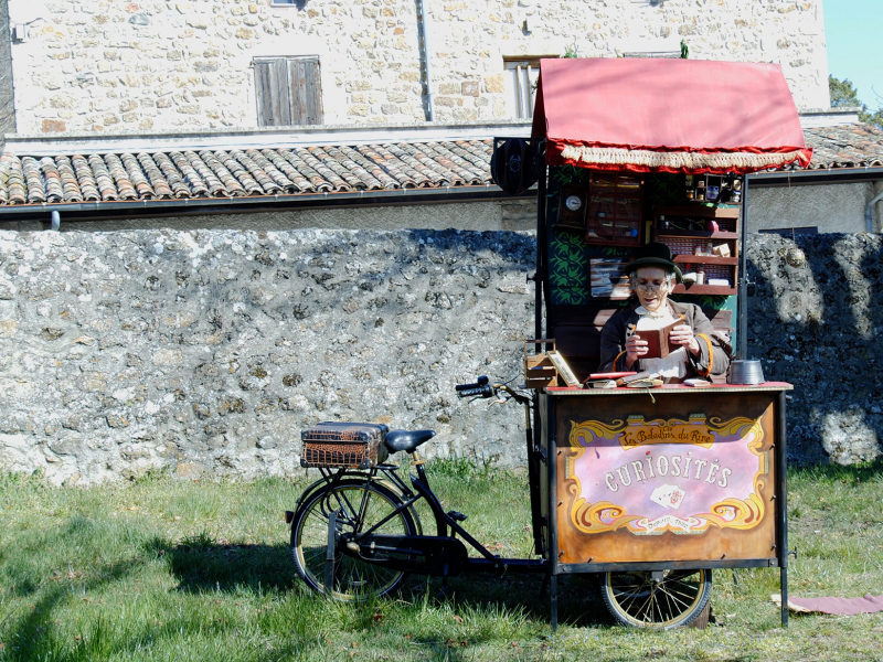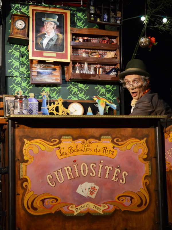 Les Curiosités ambulantes c'est la découverte d'un colporteur, magicien enchanteur qui déambule avec son cabinet de curiosités à roulettes.