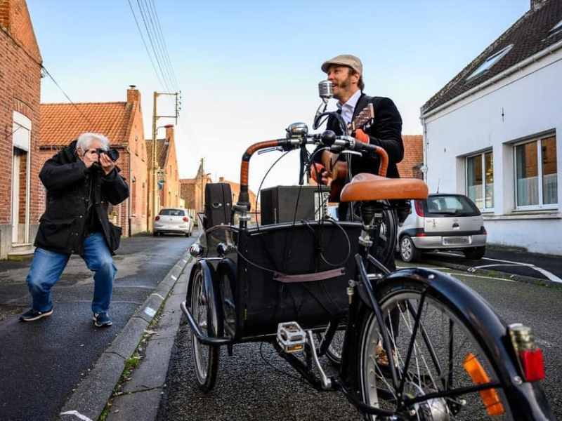 Luc le Chansonnier : chansons françaises à la carte en triporteur