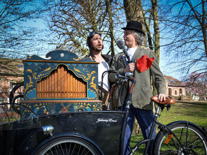 1 : Marcel La Manivelle et Emile Liéatoux joue en solo chacun de leur côté dans un coin de la ville ou alors joue au même endroit mais à des horaires différents.
