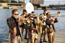 La Fanfare de l'Espace Un nouveau son venu d’ailleurs… Une rencontre mélodique entre percussions volubiles et brass band cosmique.Cuivres et percussions débridées, tubas drum’n’bass, marimba portable... Par Cie Poum tchaC