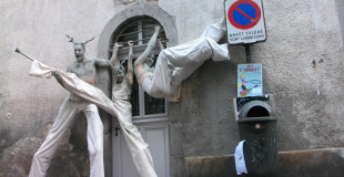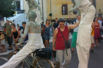 Spectacle déambulatoire interactif pour 3 échassiers. Longtemps considérés comme les gardiens du bien, 3 gargouilles veillent, s'éveillent et vous réveillent… Du haut de son perchoir, la Gargouille a tout vu et tout entendu.