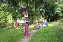 Une Balade Spectacle de 40 min pouvant être jouée 4 fois par jour, dans un site naturel extérieur type parc arboré, espace vert communal, tout site représentant un intérêt à la fois esthétique et pratique pour la mise en place d’un parcours (dans l’idéal une boucle).