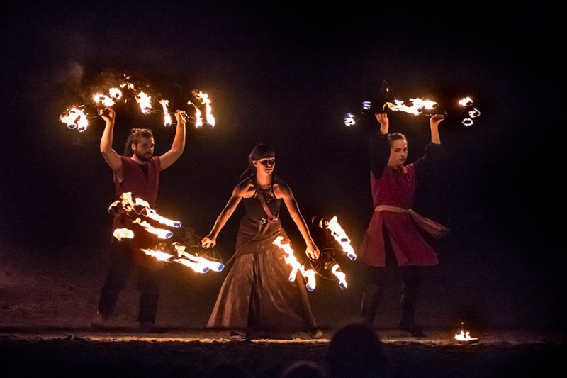 Le Spectacle de la Cie Taprobane, Les feux de Beltaine, est un spectacle pyrotechnique ou la jonglerie de feu (éventails de feu, bolas, staff, cordes, météore, anneaux...) se mêle à la poésie mythologique.