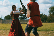 Le Spectacle, Le Chevalier Geignard, de la Cie Taprobane est un spectacle de rue historique et interactif mêlant théâtre, cascade et passes d'armes empanachées.