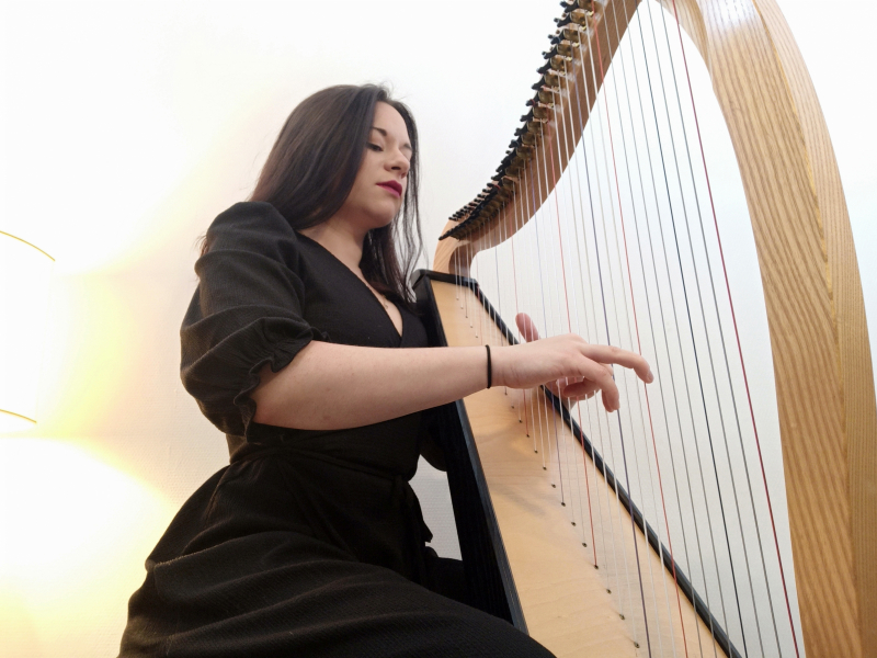 À travers mes concerts, j’aime inviter le public à un moment hors du temps, porté par la douceur de ma harpe celtique et de ma voix.