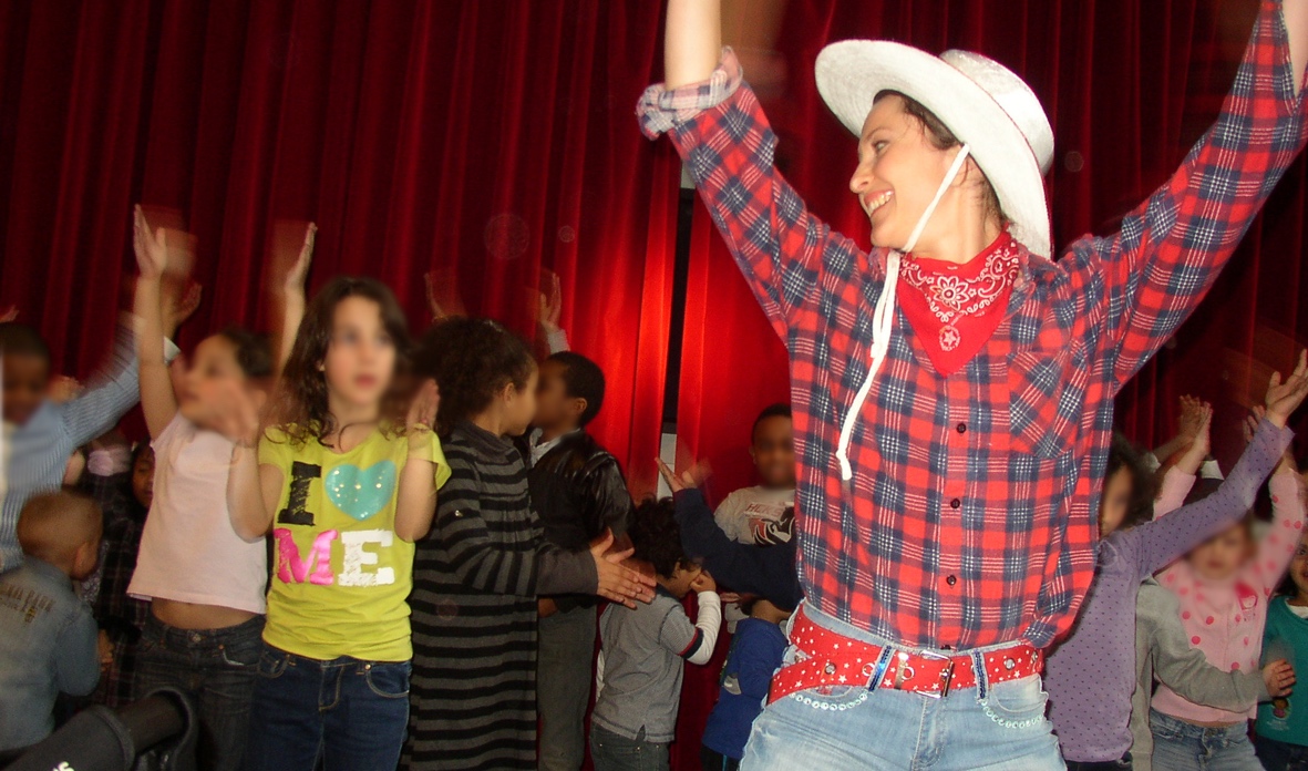 "Au Pays des Cowboys et des Indiens" est un spectacle chorégraphié et participatif de 50 à 60 minutes, composé de 2, 3 ou 4 artistes selon votre préférence. Il est proposé pour les Centres de Loisirs, Fêtes des Ecoles, Arbres de Noël, Fêtes Associatives et pour les Festivals.