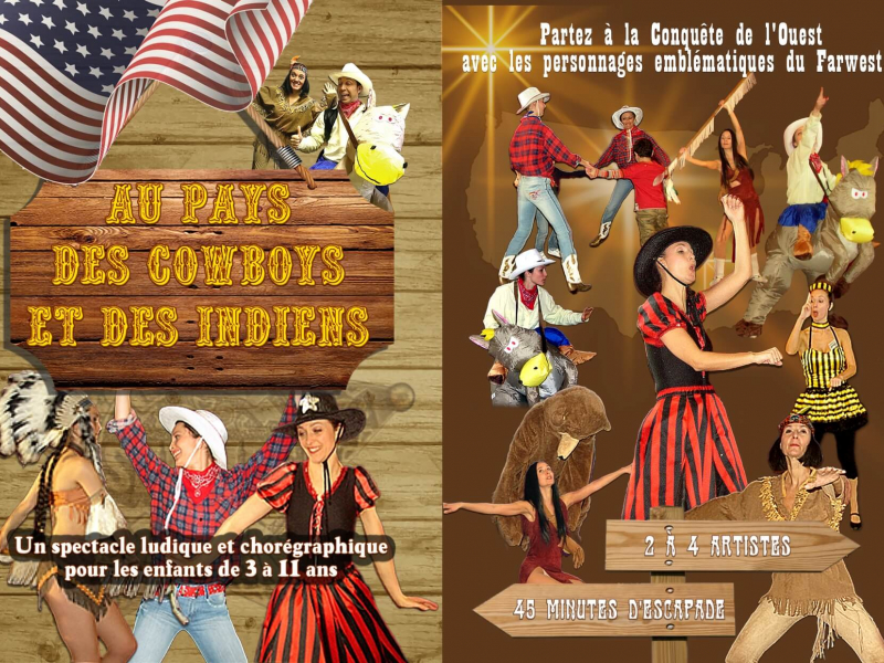 Vous allez adorer ce spectacle chorégraphique, instructif et participatif : les artistes y enseignent les danses du Farwest (Square Dance, Danse de la Pluie, Line dance...). Connaissez-vous les noms des tribus indiennes ? Savez-vous pourquoi les cowboys portent des foulards ? Connaissez-vous les corps de métiers que l'on retrouvent dans les villages ? Les Cowboys et les Indiens n'auront plus de secrets pour les enfants !