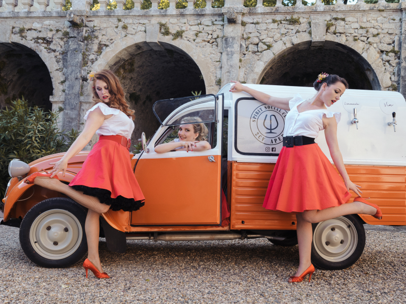 Le spectacle des Mademoiselles et de leurs 3 musiciens est un feu d'artifice, une invitation au voyage, joyeuse et exubérante, à travers les années folles dans les années 20, jusqu'aux fifties!
