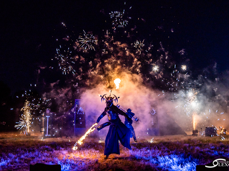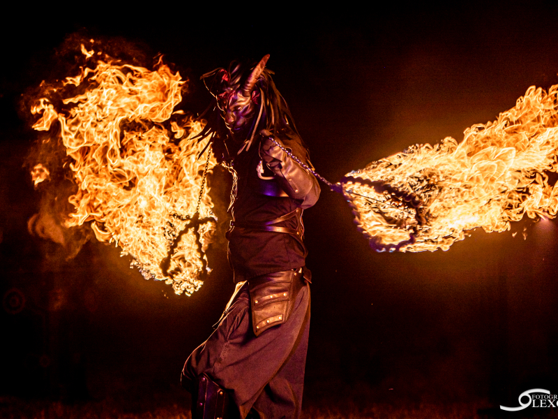 La compagnie Vaporium vous propose son tout nouveau spectacle de jonglerie enflammée mêlant art martial et jonglerie moderne. Plus qu'un simple spectacle de feu, il s’agit d’une plongée dans un univers grâce à une imposante scénographie. Un décor de 6m de large par 3m de haut, des projecteurs de flammes et des lumières programmées sur la musique. Enfin le travail des chorégraphies et de l'histoire en font une véritable expérience, bien au-delà d’une simple animation feu. Artifices et Cage à charbon pour la démesure, plus de 7 instruments de jonglerie pour la technique.