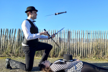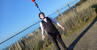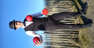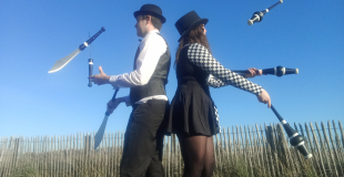 Mini ballons, massues, sabres, torches enflammées... tout virevolte et s'envole dans un ballet aérien rythmé par la bonne humeur et la joie de vivre de ces 2 jongleurs.